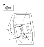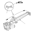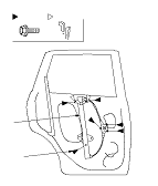 Remove the bolts, pull the regulator up to release the hooks, then remove the regulator through the hole in the door.