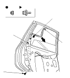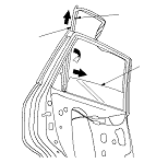 Pull the glass run channel (A) away as needed. Loosen the nut, and remove the bolt securing the rear lower channel (B).
