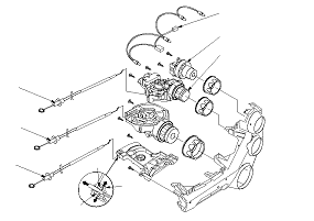 Using a snap ring pliers, widen the cable stops (A) in the cable holder (B), then pull out the recirculation control cable (C), mode control cable (D), and air mix control cable (E).