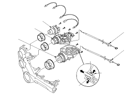 Using a snap ring pliers, widen the cable stops (A) in the cable holder (B), then pull out the mode control cable (C) and air mix control cable (D).